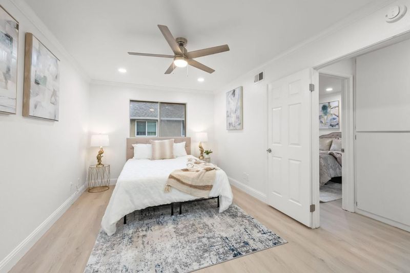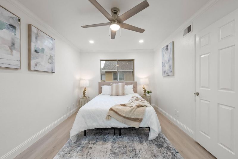 This stunning upstairs townhouse-style condo offers the perfect blend of comfort and convenience. With no neighbors above or below, you'll enjoy privacy in this spacious 2-bedroom, 1-bathroom home. Freshly painted, with new LED can lights throughout and new flooring, the condo features a cozy kitchen with new appliances and countertops. The home also includes a 1-car garage, additional parking, and access to community amenities such as a swimming pool and children's playground. The surrounding landscape is beautifully maintained with Redwood trees, pet-friendly, offering peaceful walkways and greenery for relaxation after a long day. Located near Coyote Creek Community Garden, the trail, the community library, Happy Hollow Park, and the Japanese Friendship Garden, this condo is perfect for those who appreciate nature and outdoor activities. Plus, with Costco, Walmart, schools, and public transportation nearby, you'll have everything you need within reach. Commuters will love the easy access to Highways 101, 680, and 280