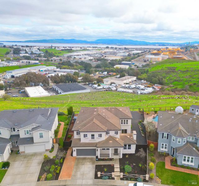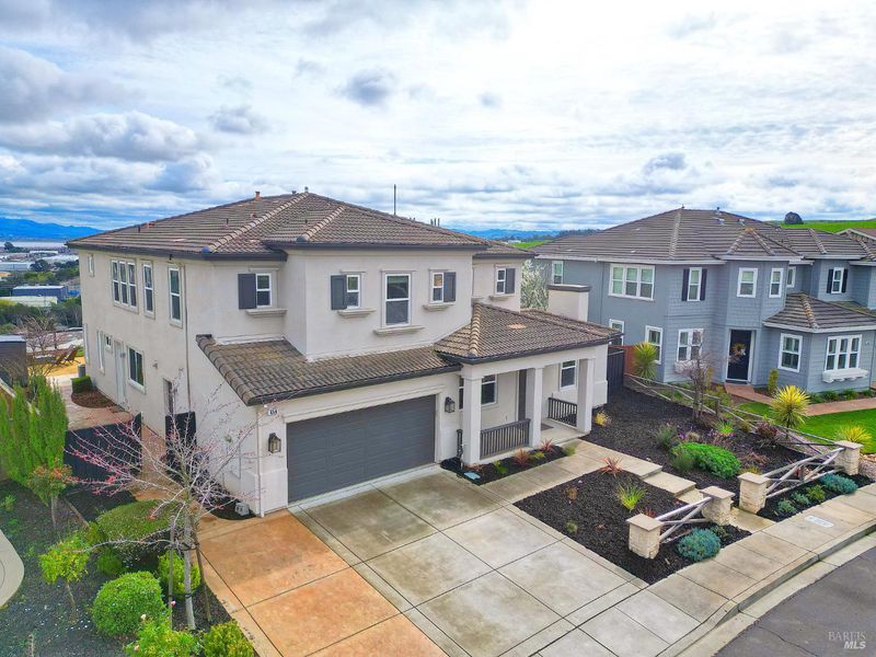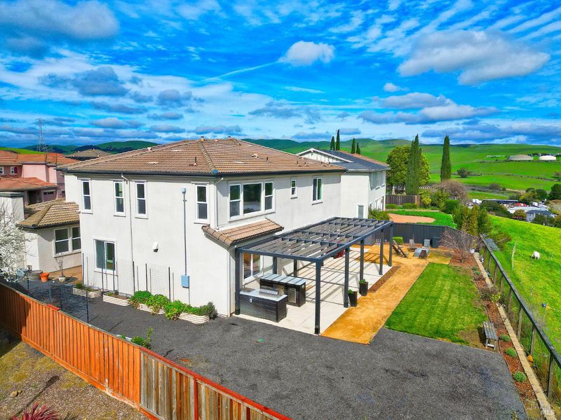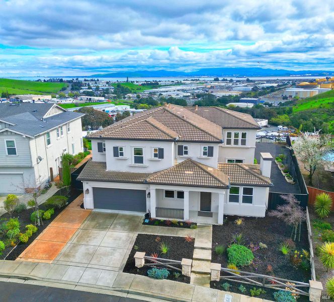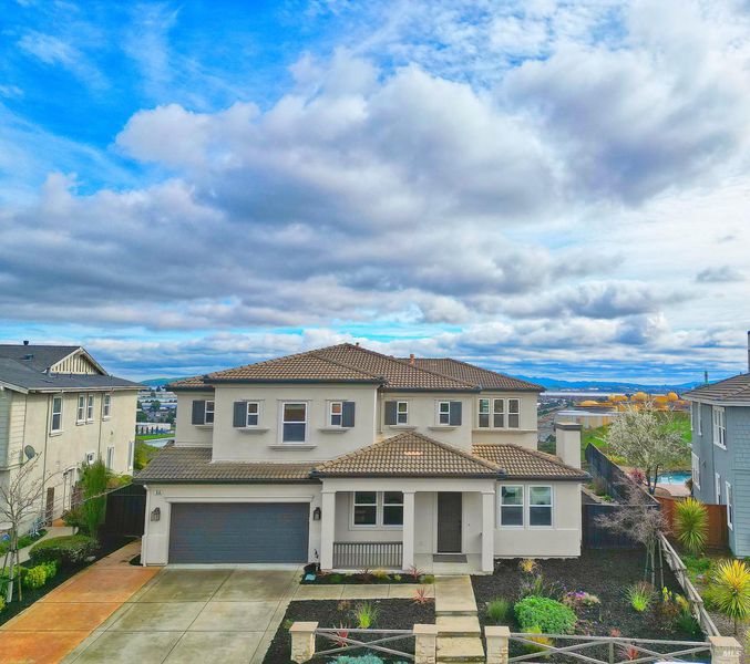 Nestled in the prestigious Water's End community and backing to serene open space, this stunning 4,200+ sq. ft. luxury residence offers refined living with breathtaking views of Mount Diablo and the Bay. Walls of windows flood the home in natural light, creating a warm yet sophisticated ambiance throughout. The expansive chef's kitchen is the heart of the home, seamlessly opening to the family room, perfect for both intimate evenings and grand scale entertaining. Featuring granite countertops, stainless steel appliances, abundant cabinetry, and an oversized island, this space effortlessly blends function and style. Elegant formal living and dining rooms provide timeless gathering spaces, while a private office and a main level bedroom with a full bath offer flexibility for guests or multigenerational living. Upstairs, discover four additional bedrooms and three baths, including a truly spectacular primary suite. This luxurious retreat features a spacious sitting area, spa inspired bath, and an enormous walk-in closet designed to impress. A versatile loft adds even more flexibility, ideal as a second family room, theater or playroom. Step outside to your fully customized backyard oasis, complete with an outdoor kitchen, multiple entertaining areas, and sweeping panoramic views. An extraordinary setting for sunset dining or weekend gatherings. Additional highlights include dual-zone HVAC, two fireplaces, recessed lighting, and a three car tandem garage. This is a rare opportunity to own a light filled, view oriented masterpiece in one of the area's most desirable neighborhoods where elegance, comfort, and nature converge.