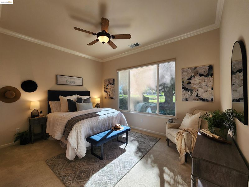Gorgeous Magnolia model on the golf course. Quiet dead end street. Open spacious floor plan. Two master-suites! Large office or guest room. Refrigerator, washer & dryer stays as does the whole house vacuum. Solar is owned and included. Crown molding. Granite Counters. Spectacular view across two fairways. Be sure to see the huge Recreation Center with it's two pools, large meeting rooms, library, exercise rooms, by far the largest in any Summerset! Come and enjoy all the activities Summerset has to offer!