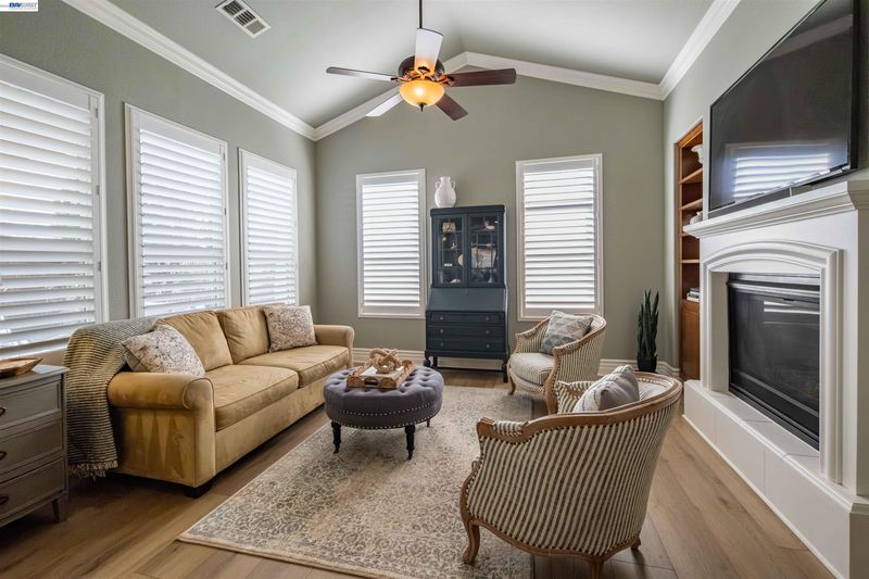 Welcome to resort-style living at its finest. Trilogy at The Vineyards is an active 55+ community. This highly sought-after Rafael model with Napa Cottage elevation, beautifully maintained and ideally situated with olive grove views. This 2 bedroom + office, 2.5 bath home features 14-ft vaulted ceilings, extensive molding, BRAND NEW premium waterproof flooring, shutters, and a spacious hearth room with cozy fireplace. The flexible office space is perfect for working or hobbies. The chef’s kitchen shines with a large granite island, stainless steel Jenn-Air appliances, gas cooktop, double ovens, built-in refrigerator, butler’s pantry and added storage and prep space. The primary suite offers vaulted ceilings, a spa-inspired bath with soaking tub, dual vanities, oversized walk-in shower, and a custom walk-in closet. Situated on a premium lot with over $100,000 in landscaping upgrades, enjoy flagstone and paver patios, stone retaining walls, covered patio with ceiling fan, outdoor gas line, water feature, and low-maintenance grounds. Additional highlights include a 2.5-car garage with built-ins and overhead storage, water softener, reverse osmosis. Resort-style amenities including a clubhouse, café, indoor/outdoor pools, full-service spa, pickleball & bocce courts and much more!