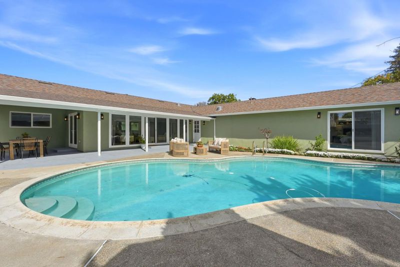 Over 500k of upgrades! Fantastic neighborhood with extra wide streets. Move right in and enjoy this extensively renovated, single level Ranch home, on a quiet and large lot. Beautiful finishes throughout includes hardwood floors, Chefs kitchen with quartz countertops, ceramic subway backsplash and 5 burner stove. Separate family room off kitchen. Primary suite includes a remodeled, well-designed bathroom with a double vanity with a marble top, walk-in shower with bench and a walk-in closet. Sun-filled living & dining area with walls of windows overlooking the covered patio and large yard with a gleaming swimming pool. Attached 2-car garage with fresh epoxy floor. Separate mud/laundry room with sink and 2nd refrigerator. A/C, upgraded electrical for EV charger. Professionally landscaped with drought-resistant plants and lovely wine producing grapevines. Close proximity to the shops and restaurants at the Pruneyard, Farmers Market, Downtown Campbell, Whole Foods, Los Gatos Trails and major Silicon Valley companies, VTA, light rail and major commuter routes