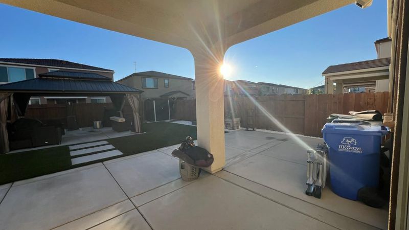 Stunning almost new 3 bedroom, 2 1/2 bath home with no HOA. This home is beautifully maintained, on a premium sized lot. Lots of natural light and an open concept make this home perfect for entertaining. A beautiful kitchen featuring stainless steel appliances, sleek countertops, and abundant storage, making it ideal for entertaining or everyday cooking. Leased solar keeps energy costs down. The backyard is has beautiful landscaping and gazebo, the perfect setting for entertaining and relaxation. Centrally located around the corner from a large park with extensive amenities, highly-rated schools, and easy freeway access. Experience Elk Grove's family-friendly atmosphere, diverse dining, shopping, and nearby Sky River casino, all while enjoying this home's fresh, new-build condition.