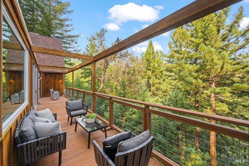 Perched above Cascade Canyon and nestled among majestic redwoods, this dramatic mid-century gem captures breathtaking, ever-changing views of Mt. Tamalpais. A quintessential Mill Valley retreat - Iconic gable roofs and soaring floor-to-ceiling windows define the architecture, flooding the interiors with natural light and framing the surrounding beauty from nearly every room. Three sun-drenched decks create a seamless indoor-outdoor connection, offering the perfect setting to relax, entertain, and take in the stunning backdrop. Thoughtfully designed with both gathering and privacy in mind, the versatile floor plan easily accommodates modern living. The spectacular living room is a true showpiece, showcasing incredible windows and abundant light, centered around the fireplace - while a second family room downstairs provides a comfortable, casual space to unwind. Featuring 5 bedrooms and 3 updated bathrooms, the home offers flexibility for families, guests, or dedicated office spaces, along with exceptional storage throughout. The updated kitchen opens to the dining and living areas, enhancing flow and functionality for everyday living and entertaining alike. Recently refreshed with new interior paint, updated flooring, lighting and hardware, the home beautifully blends its mid-century character with move-in-ready appeal. Tucked away in a peaceful canyon setting - literally along the beloved Cascade trail loop yet just minutes to downtown Mill Valley, shops, restaurants, top-rated schools, and trailheads - this is a rare opportunity to own a timeless property in one of Mill Valley's most desirable and picturesque locations.