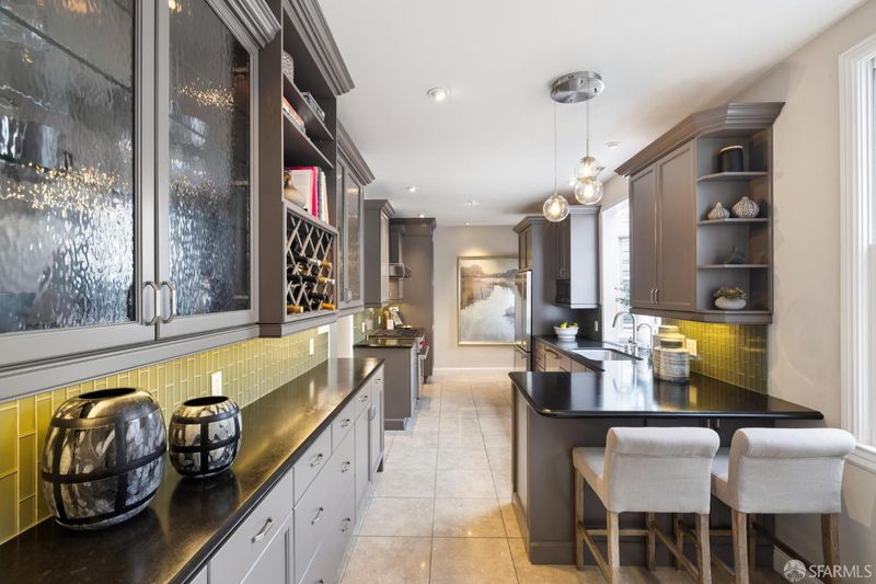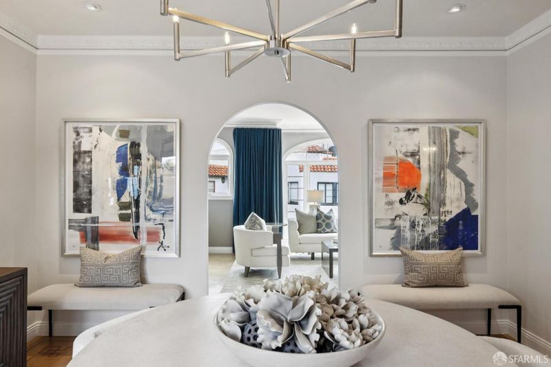 Elegantly appointed top-floor two-bedroom, one-and-a-half-bath condominium situated on one of the Marina's most sought-after blocks, just steps from the Marina Green. Mediterranean two-unit building located on charming tree-lined street. This home blends classic elegance with tasteful modern upgrades to create a refined living environment for today's discerning buyer. The spacious eat-in kitchen features stainless steel appliances including a six-burner Wolf range, ample cabinetry, stone countertops, and fossilized limestone flooring. The living room enjoys partial outlooks of the Bay and Marina Green, wood burning fireplace, built-in surround speakers, and custom lighting. The two bedrooms are situated at the rear of the home and include custom built-ins along with a beautifully designed wall bed. The designer bathroom and powder room are appointed with Calacatta D'Oro marble, Grohe fixtures, and heated floors. Additional highlights include air conditioning, newer double-paned windows, and a new roof. Shared amenities include a landscaped rear garden, side-by-side parking, and a large private storage room in the garage. This HOA also has earthquake insurance.