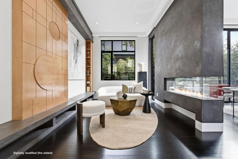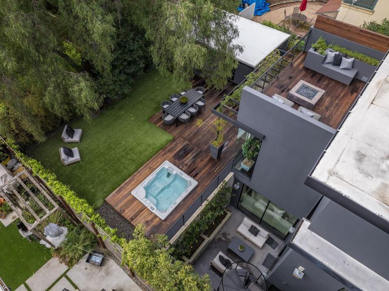 Welcome to 838 Cowper Street--refined and modern living in coveted Professorville, just a three-minute walk to downtown Palo Alto. Built in 2014, this 5-bedroom, 4.2-bath home offers 3,629 square feet of thoughtfully designed living space on a 5,600 square foot lot. Soaring 11' ceilings, floor-to-ceiling glass sliders, and Velux skylights fill the home with natural light. A dramatic 130-square-foot living wall of 650 plants and tiled waterfall create striking architectural focal points. The chef's kitchen features marble slab waterfall countertops, gas range, wine refrigerator, and built-in Bosch, Miele, and Thermador appliances. The basement extends the home's exceptional entertaining range with a fully equipped wet bar, home theater with surround sound, and (unexpectedly) a spacious, light-gathering patio. The home opens to a backyard with a jetted in-ground hot tub and outdoor kitchen with gas-plumbed grill, sink, and beverage fridge. Lutron lighting, motorized shades, 5-zone Sonos with Bowers & Wilkins speakers, and HEPA filtration provide modern comfort. The primary suite offers a steam shower, soaking tub, heated floors, towel warmer, and private deck with gas fire pit. Solar pre-wire, 220V EV charger, and whole-home security. Served by Addison, Greene, and Palo Alto High.