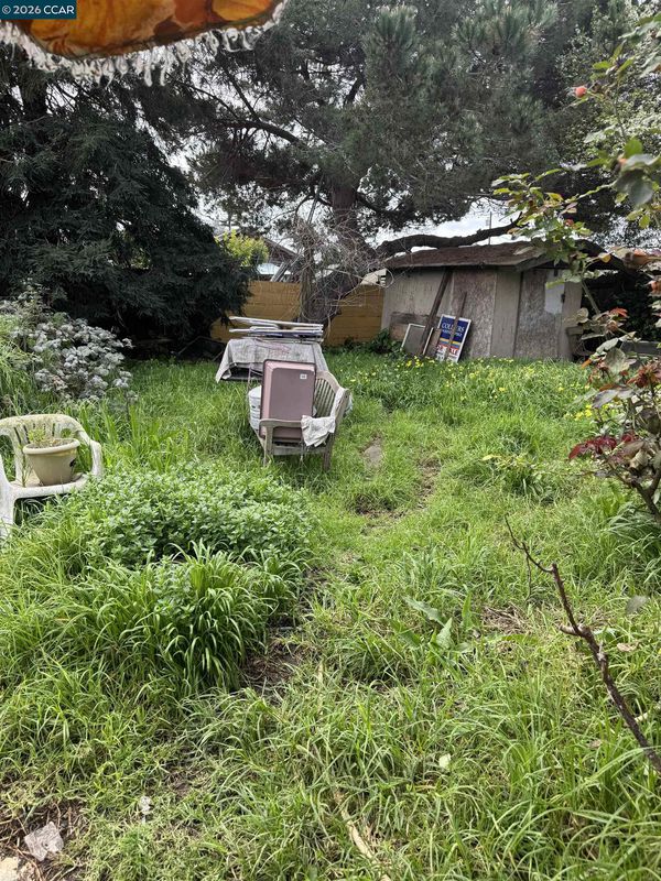 First time on the market in over 60 years. Lovingly maintained for decades and ready for its next chapter. A rare opportunity to restore and reimagine a long-held family home. Opportunity awaits at 1418 Esmond Ave in Richmond’s desirable Belding Woods / Andrade Park area. This 2-bedroom, 1-bath 1943 single-level home offers 812 sq ft of living space plus a spacious enclosed sunroom bonus area overlooking the backyard. The home retains original hardwood floors, classic 1940s character, and a light-filled living room with brick fireplace. The functional floor plan includes two comfortable bedrooms and a full bath. The enclosed sunroom addition provides flexible extra space ideal for a home office, hobby room, workout area, or future reconfiguration (buyer to verify permits and square footage). Situated on a generous 5,050 sq ft lot, the backyard offers significant potential for landscaping, expansion, or ADU possibilities (buyer to verify). Detached garage/storage space adds utility. This is a value-add opportunity for investors, contractors, or buyers looking to renovate and customize. Conveniently located near parks, schools, shopping, and commuter access. Bring your vision and unlock the upside.