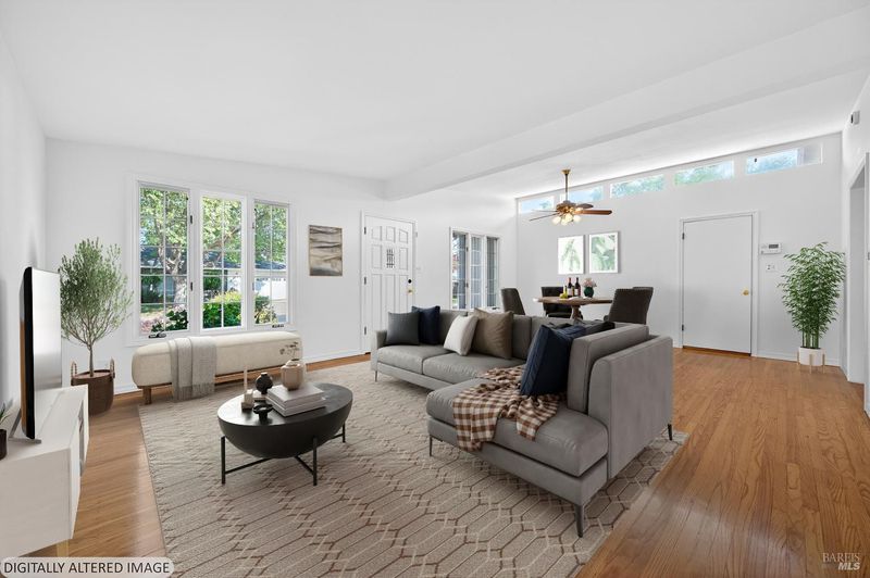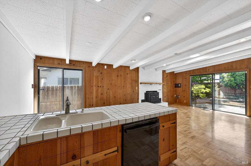 This lovely 3-bedroom 2 bath, 1,747 sq. ft. home is now available in the Hillcrest Estates neighborhood of East Vallejo. Upon entry you are greeted with a spacious formal living room and dining area with vaulted ceilings. Off the custom kitchen you will find a cozy family room as well as an informal dining area with a fireplace insert. The spacious family room has an open beam ceiling and sliding glass doors that leads to the back yard. There is hard wood flooring throughout most of the house, the kitchen and family room with up cycled basketball court flooring. Relax in the hall bath featuring a super large spa tub and skylight. The windows have been upgraded and the interior has been freshly painted. Seller states the roof is about 7 years old. The property has mature landscaping front and back for your enjoyment. The property is a short distance to shopping, eating and Benicia State Park.