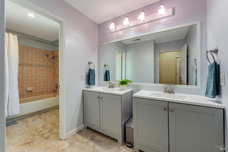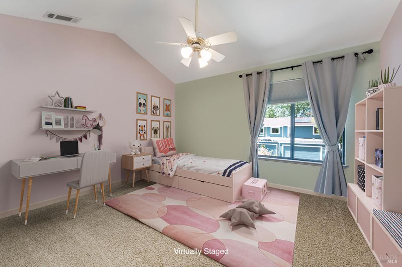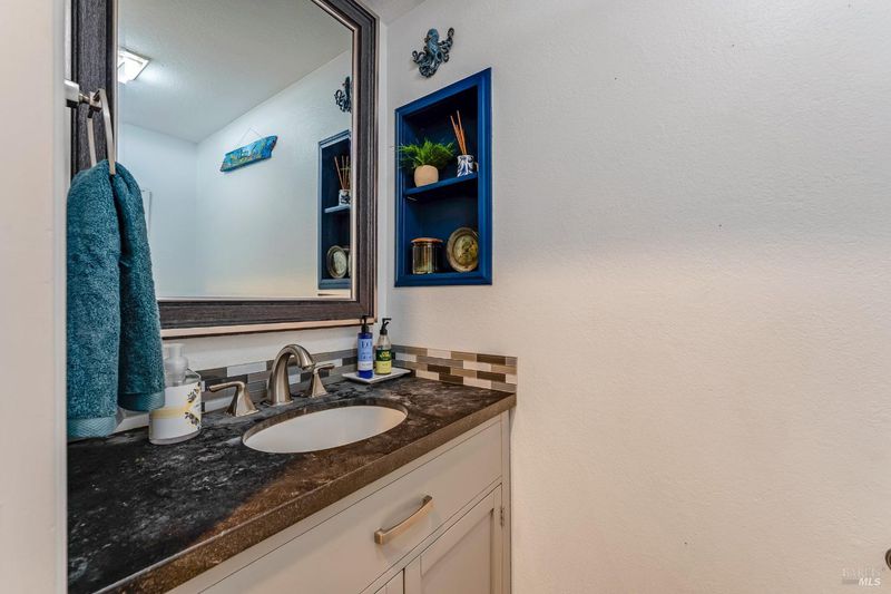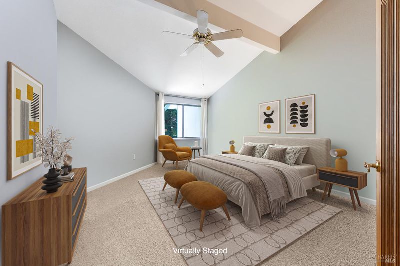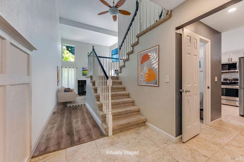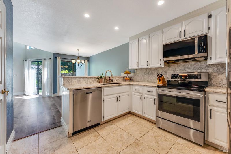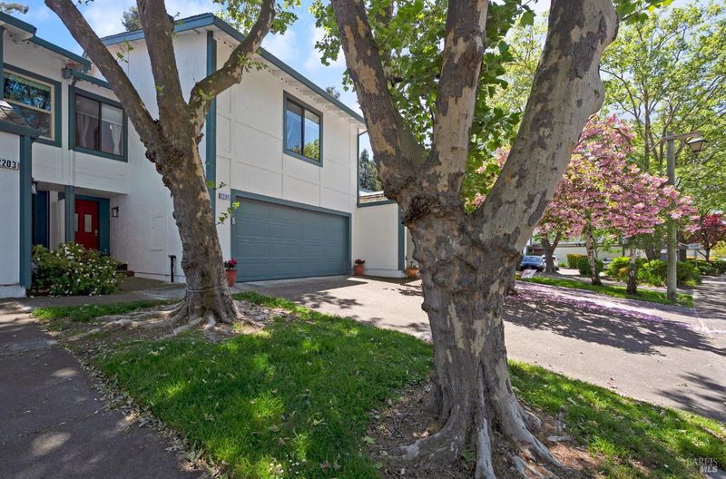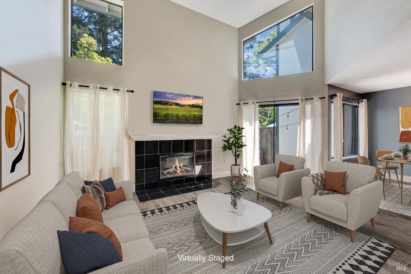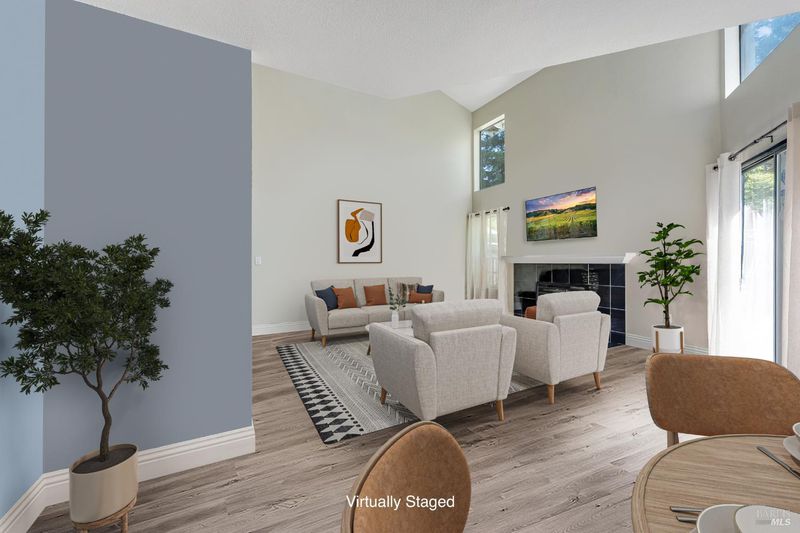 Welcome to this fantastic move-in ready two-story condo in the Shelter Hills community. Inside, there is a spacious entry with a drop zone wall. The living room boasts vaulted ceilings and high windows, creating an airy and open atmosphere. The kitchen features granite countertops, a walk-in pantry, and bar seating. The dining area views to the backyard and opens to the living room. A convenient half bath rounds out the downstairs layout. Upstairs, there are three large bedrooms, including a primary with en suite. The spacious hall bathroom has new vanities. Outside, enjoy a low-maintenance backyard with turf and a patio. As part of the Shelter Hills HOA, you'll have access to a pool, tennis courts, and a clubhouse set among redwood trees - plus RV parking (when available). Welcome home!