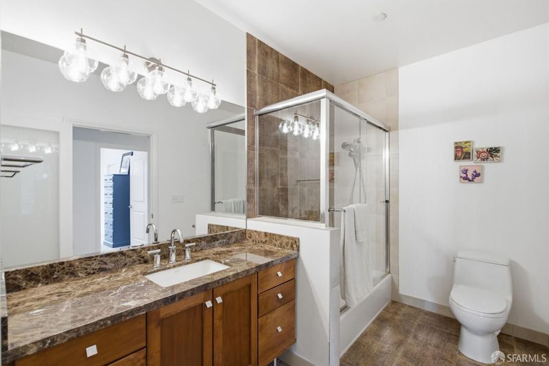 A southwest-facing corner condo filled with light right where the Mission, Bernal Heights, and Noe Valley meet. Light fills the condo throughout the day, with Sutro Tower framed perfectly against the skyline and the hills beyond. The layout feels easy and intuitive, with separation that makes sense. The living and dining areas are open yet well defined, anchored by a fireplace that grounds it all. It brings people together while still giving each zone its own purpose. These spaces open directly onto a generous private balcony, creating seamless indoor-outdoor living. Coffee in the morning, and by evening it's where everyone ends up before dinner. The kitchen sits at the center with plenty of counter space, abundant cabinetry, a gas range, and a wide counter bar that naturally becomes the gathering spot. Both bedrooms are down the hall from the main living areas, creating natural separation. The second bedroom flexes easily, whether set up for guests, work, or both. The second bath is roomy and comfortably accommodates guests, everyday routines, and the in-unit laundry without feeling tight. The primary suite feels private and generous, with multiple closets and a bath complete with a deep soaking tub, separate shower, and double sink vanity. Parking is included and elevator access keeps things simple. Upstairs, the rooftop deck opens to sweeping city views and wide sky, an easy spot to linger, connect, or take in the skyline with friends. Bernal Heights Park is nearby, with other green spaces woven into the neighborhood for a quick run, a walk with the dog, or time on the hill. Safeway is close, Whole Foods on 24th is easy, and the restaurants and cafes along both Valencia and Mission are steps away. Freeway access is simple, and MUNI and tech shuttle stops keep commuting flexible. A corner condo positioned exactly where you want to be.