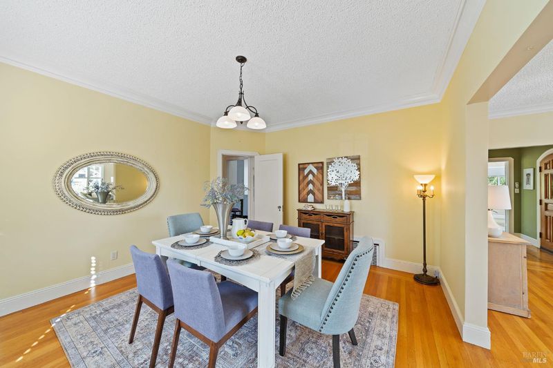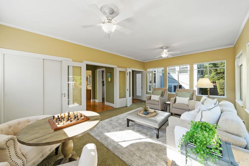 Welcome to Six Hanns Ave. This one-of-a-kind, exquisite home seamlessly blends classic charm, comfort, and style set on an expansive lot in the desirable Vistas neighborhood. Step inside to find spacious living and dining rooms, ideal for entertaining, alongside a bright sunroom with inviting garden views that are sure to draw you in. Beautiful hardwood floors, built-ins, and detailed trim add timeless character throughout the home. Upstairs, you'll find generously sized bedrooms and a full bathroom. For everyday convenience, the laundry room and extra storage are just off the kitchen. The lower level features a bedroom and two versatile rooms, perfect for guests, extended family, or a creative workspace. With its own private entrance, this area could function as an ADU with some thoughtful modifications. Set on a spacious double lot, the property boasts a lush, private garden, providing a peaceful retreat for relaxing in the shade or hosting gatherings with friends. Ideally situated between San Francisco and Napa Valley, Local favorites nearby include Mare Island Coal Shed Brewery, Provisions, the weekly farmers' market, and Quarters Coffee House. With easy access to the San Francisco Bay Ferry, this home offers both a smooth commute and a vibrant lifestyle.