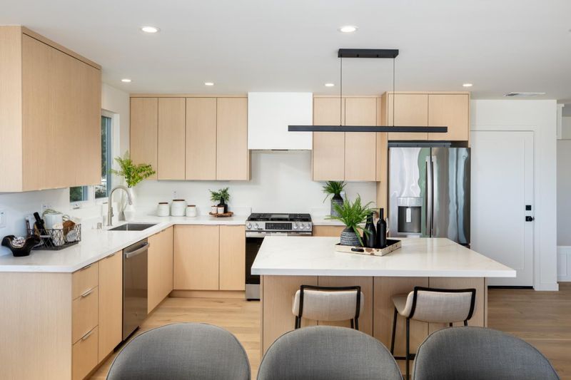 Countertop - Quartz, Dishwasher, Exhaust Fan, Garbage Disposal, Hood Over Range, Island, Oven Range - Gas, Refrigerator
