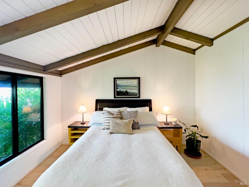 - Cathedral/Vaulted, Deck Attached, Great Room, Open Beam Ceiling, View