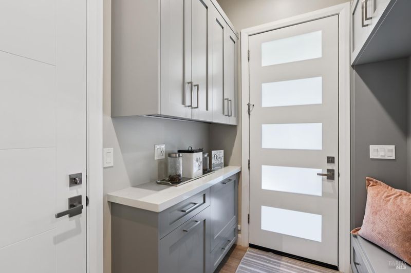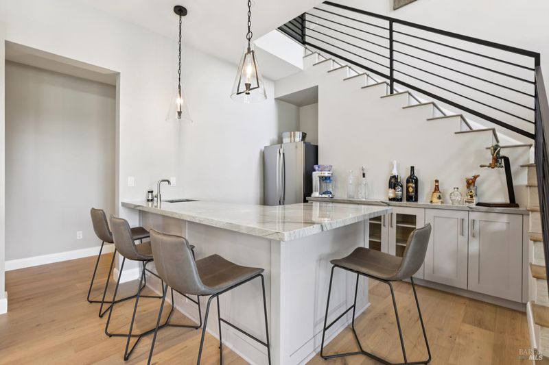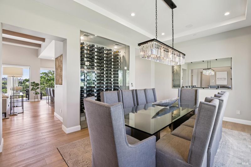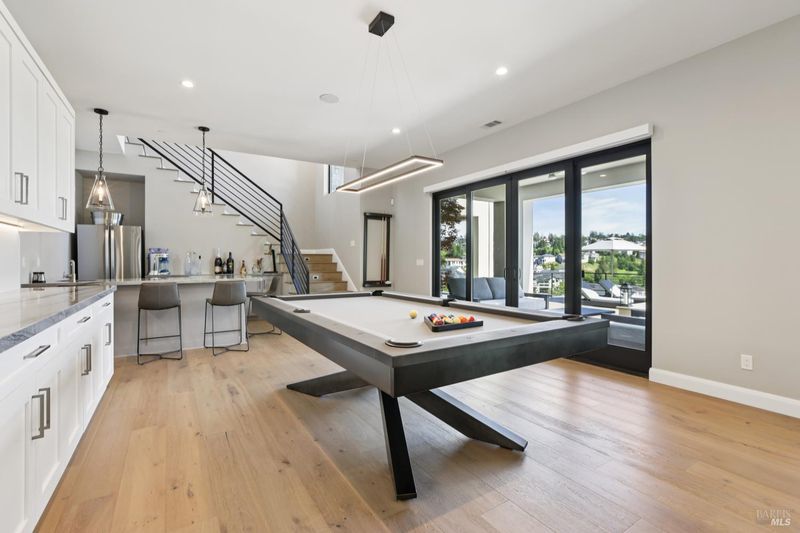 Welcome to this private gated estate where luxury, design, and lifestyle converge. This stunning custom home showcases impeccable craftsmanship and high-end finishes throughout. Step inside to soaring vaulted wood-beamed ceilings, rich white oak wood flooring, and a grand statement fireplace that anchors the light-filled living spaces. Fleetwood retractable sliding doors create seamless indoor-outdoor flow to a covered patio complete with a full outdoor kitchen and TVideal for elevated entertaining. The gourmet kitchen is a showstopper, featuring a 6-burner stove, oversized refrigerator, beverage fridge, warming drawer, waterfall quartzite countertops, and a walk-in pantry with a built-in coffee bar. A dramatic temperature-controlled wine wall adds a sophisticated touch. Retreat to the luxurious primary suite with a private deck and a spa-inspired bathroom offering heated floors, soaking tub, walk-in shower with custom tile, double vanities, and a bespoke walk-in closet with glass storage and center island. Downstairs is an entertainer's paradise with a full bar, pool table, great room, home theater, and covered patio. Outdoors, enjoy a Baja beach pool with dual umbrellas, spa, raised garden beds, expansive patios, and breathtaking views and backing to open space. All on a manicured 1.26 acre private lot. Complete with a 3-car garage, paid solar, and Generac generatorthis estate delivers exceptional living at every turn.