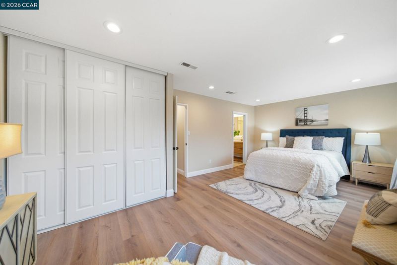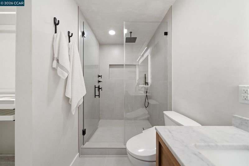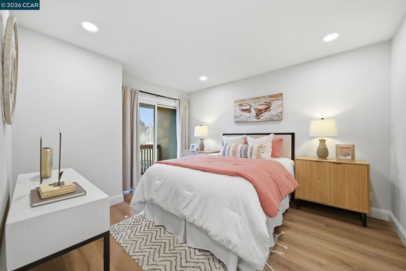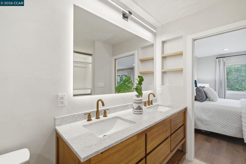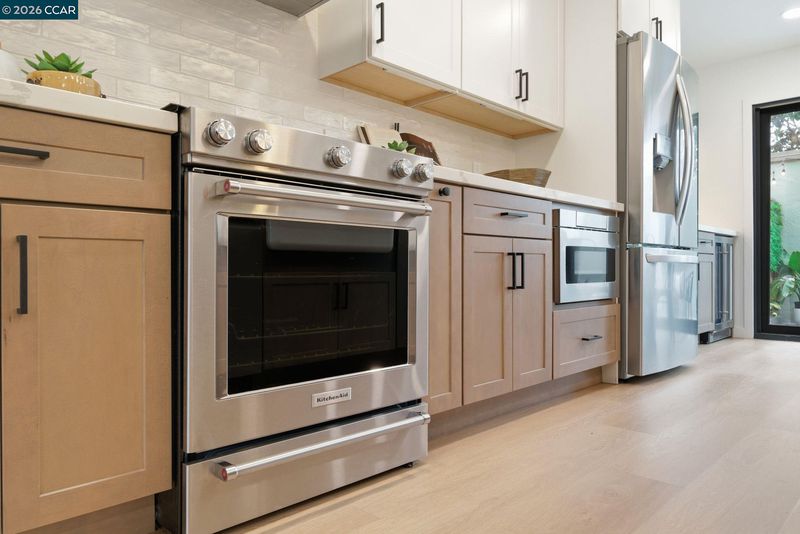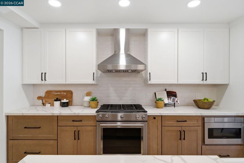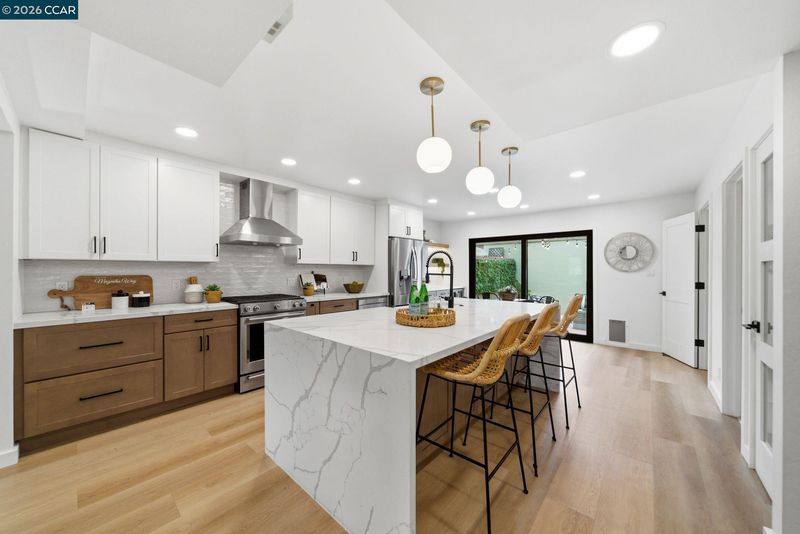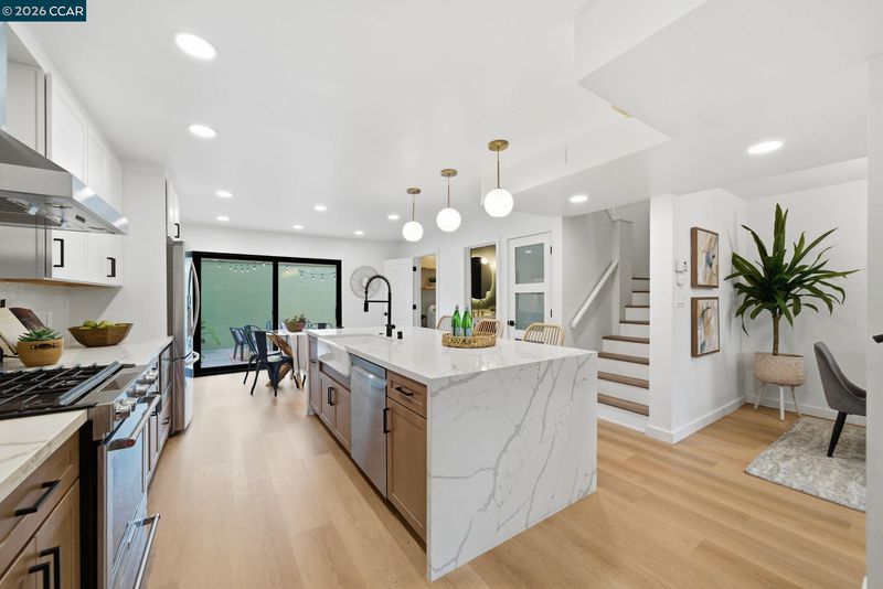 Boldly reimagined with meticulous intention and elevated design, this beautifully updated home blends style and functionality throughout. The stunning kitchen was thoughtfully redesigned for flow, showcasing a KitchenAid gas range, updated appliances, custom floating wood bar shelves with integrated LED lighting, and a dramatic waterfall island. Wide-plank luxury vinyl flooring and a glass-paneled pantry door complete the modern aesthetic. Upstairs, the primary bath was expanded to include a double vanity, Kohler rain shower system, Toto bidet toilet, and striking tilework, complemented by a custom walk-in closet with integrated lighting. Roman clay walls in the primary and half bath introduce warmth and texture, paired with designer lighting and refined finishes. Step outside to a private backyard retreat designed for both relaxation and entertaining. Custom tile work, built-in planters, and installed string lighting create an inviting setting to host friends or unwind in the evening. A 2-car garage and access to Casitas community amenities complete the home. Ideally located near parks, shopping, walking and biking paths, the SF Ferry, Oakland Airport, and Alameda’s highly regarded public schools.