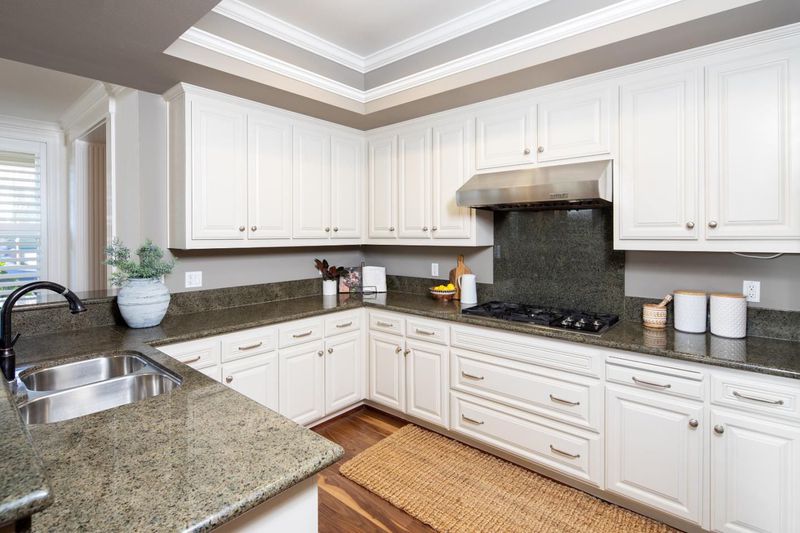Cooktop - Gas, Countertop - Granite, Dishwasher, Exhaust Fan, Microwave, Oven Range - Built-In, Pantry, Refrigerator
