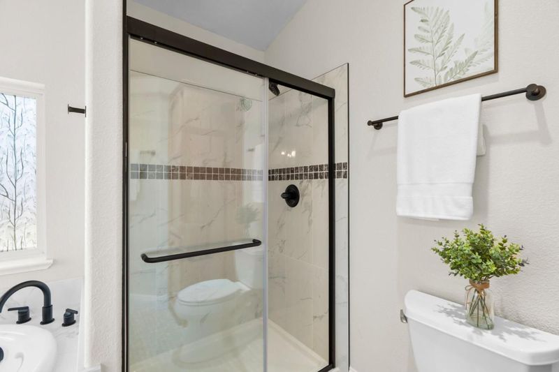 Barely *20 years new* and nestled near Valley Fair, Santana Row, and the Rose Garden, this move-in-ready, comprehensively upgraded single family home marries traditional craftsman details with the modern bones and safety benefits of newer construction. Walk through the professionally-installed low-maintenance front yard and into the impressively vaulted living area, bathed in natural light through oversized French windows and multiple skylights. The kitchen features custom maple cabinetry, custom 6-ft pantry, and double osmosis water filtration, while offering ample space for serious food prep. Bathrooms have been modernized with marble tile, custom vanities, dual mirrors, glass shower doors, Kohler toilets, matte black fixtures and a large storage cabinet. Bedrooms include vaulted ceilings, custom closets, motion-sensor hall lighting, and hardwired smoke and CO detectors. Outdoor improvements include artificial turf, California native landscaping, Trex decking, a pergola with shade sail, custom privacy lattice, and Mexican cobble accents. The single-car garage features an epoxy floor, storage, & EV charging access. Additional highlights include solar panels (Sunrun), newer fencing, seismic jacks, upgraded ventilation, irrigation, multiple outdoor faucets, & a cozy front porch.