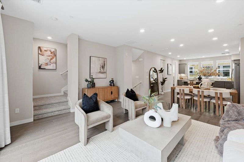 Welcome to this modern three-story townhouse, situated in the desirable Vale community. Built in 2018, this exceptional home offers 3 bedrooms, a den, 2 full baths, and 2 half baths. The 1st floor features a den and a half bath, ideal for an office or fitness area. The main floor impresses with a bright, open-concept living space. The gourmet kitchen features sleek quartz countertops, SS appliances, a spacious island, a walk-in pantry, and an adjacent half bath. Step onto the expansive balcony to enjoy fresh air. The top floor boasts a primary suite with soaring 11 ft ceilings, a walk-in closet, and a bathroom with dual sinks. Two additional bedrooms share a full bathroom with a soaking tub. Additional highlights include high-end laminate flooring, smart home features, a EV wall charger, multi-zone A/C, a tankless water heater, and a two-car side-by-side garage. The community offers playgrounds, a clubhouse, and low HOA fees. This prime location offers excellent connectivity with major highways, and Caltrain, providing an easy commute to major tech employers such as Meta, Apple, and Google. Walking distance to nearby parks including Magical Bridge and Wiser Park. Close to grocery stores, restaurants, and shopping centers. Don't miss the opportunity to make this home yours!