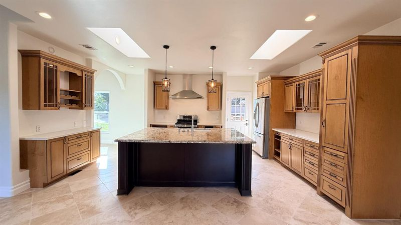 - Breakfast Area, Pantry Cabinet, Pantry Closet, Concrete Counter, Skylight(s), Granite Counter, Island, Stone Counter