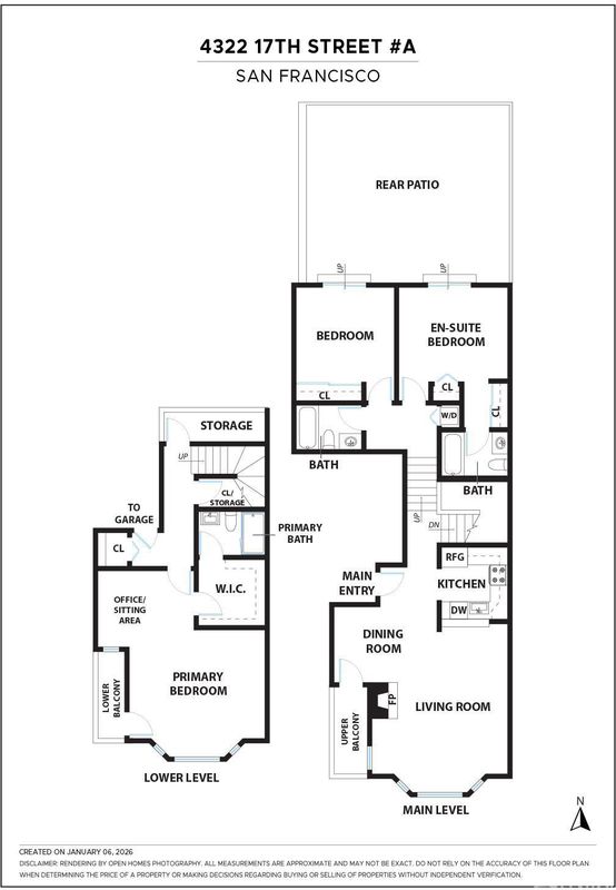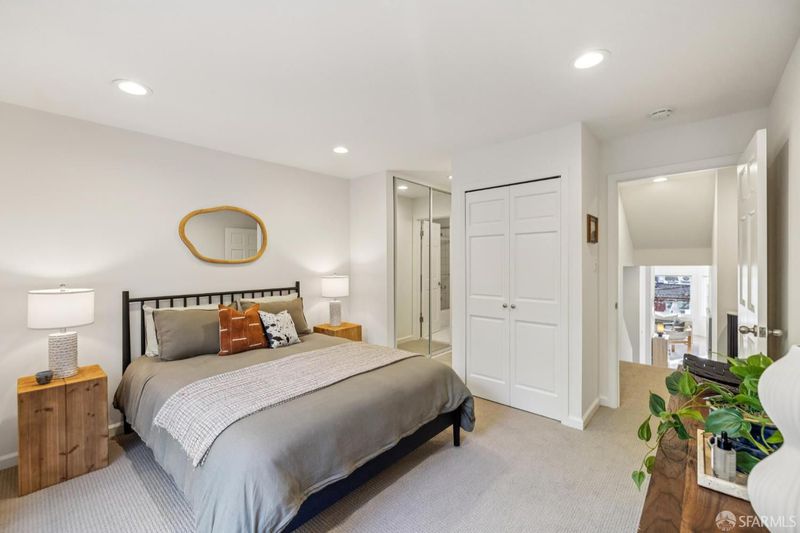 This stylish, expansive & bright 3 bedroom, 3 bathroom condo offers the scale and flow of a house with seamless indoor-outdoor living, 1 car SxS garage parking & a prime Corona Heights location with a 94 Walk Score. Spacious & flexible 2-level floor plan, ample storage, A/C & multiple outdoor spaces including a large shared rear patio/garden. Main level has a sunlit open living room w/ wood burning fireplace, wood floors, balcony & southern views from large bay windows. Efficient kitchen w/ ssl appls, bkfst bar & separate dining area. Two upper BDs w/ one ensuite have generous closets & direct access to tranquil shared patio for outdoor entertaining. Addl full BA & laundry closet on the main level. Lower level w/ separate entry door has a private & large primary ensuite BD w/ full BA, WIC, balcony & space for a sitting area/office, plus 2 storage closets. Garage w/ interior access & addl storage. Central location close to Castro, Duboce Triangle, Lower Haight, Cole Valley & multiple parks. Easy access to Castro Muni Station, bus lines, Mollie Stone's, nightlife, shops, dining & much more. With a prime location, spacious layout, outdoor living & natural light, this appealing house-like condo provides a comfortable & convenient retreat for enjoying a vibrant city lifestyle.