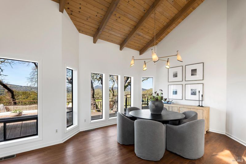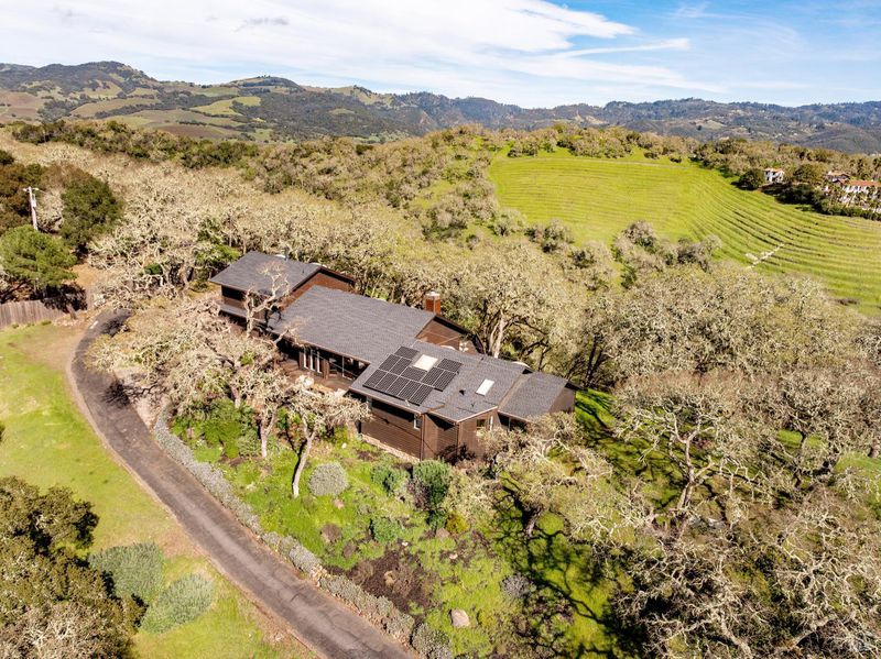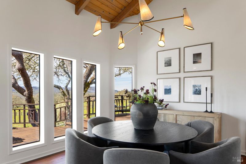 Perched on a scenic ridgeline with exceptional Valley of the Moon views, this well-maintained 4-bedroom, 3.5-bath wine country estate offers privacy, natural light, and sweeping vineyard and hillside vistas from nearly every room. Nestled on 5 acres, the property is an ideal retreat peaceful, private, and perfectly positioned to capture the beauty of its surroundings. Expansive windows and soaring ceilings flood the home with light, while generous living spaces and seamless indoor-outdoor flow make it equally suited for everyday living and entertaining. Recent updates include a new roof, an updated kitchen and baths, and rich walnut floors that add warmth and sophistication throughout. The chef's kitchen opens to the main gathering areas, while the primary suite is thoughtfully positioned to take full advantage of the breathtaking views. Expansive decks provide the perfect setting for sunset dinners, morning coffee overlooking the vineyards, or simply enjoying the quiet of your own ridge-top sanctuary. With ample space for gardening and outdoor enjoyment, this is refined wine country living at its best private, light-filled, and surrounded by natural beauty.