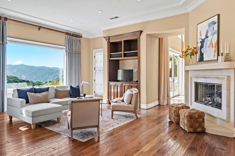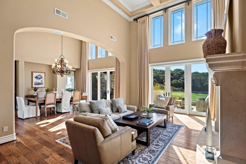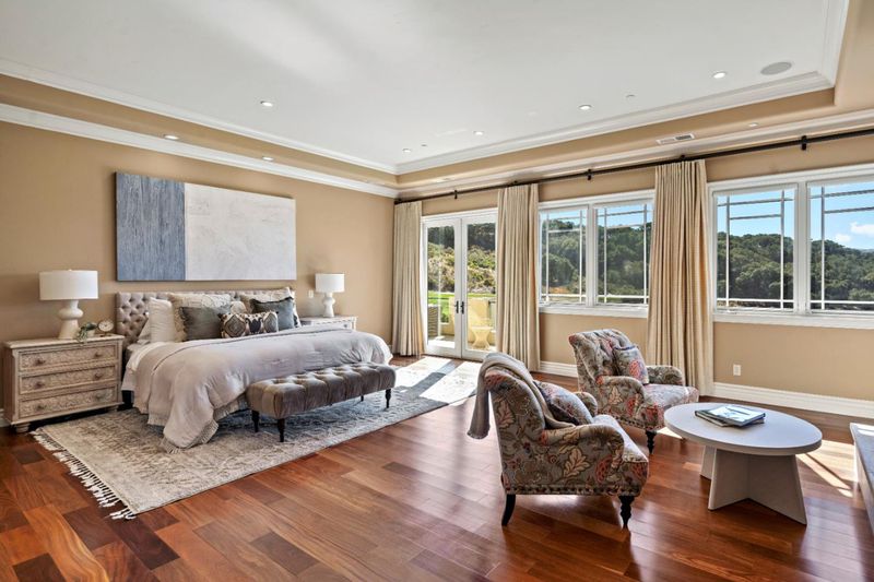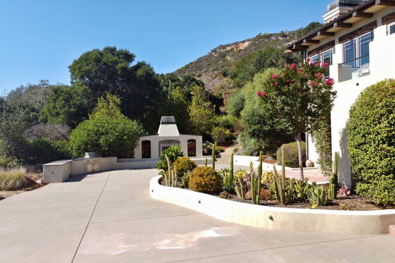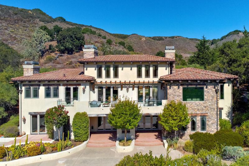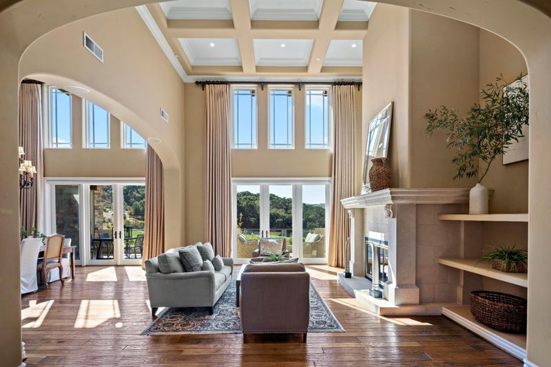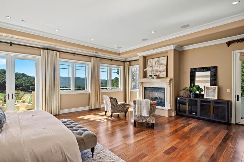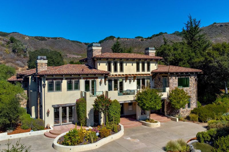 Soak in panoramic golf course and mountain views, from this grand Mediterranean home on the 5th Fairway of the Club at Pasadera. Situated on a private lot of just under an acre, the property features meandering pathways and expansive outdoor BBQ and entertainment areas, all centered around a beautiful pond and waterfall system. Inside, you'll find soaring ceilings and a massive fireplace, with French doors leading out to vista views. An entertainer's dream layout, the chef's kitchen offers an additional caterer's cooktop and prep area in the adjacent pantry. Entering the primary suite, you'll find an additional fireplace, 2 balconies, a walk-in closet and a spacious primary bath, with separate tub and shower. Immediately across the hall, the office/den area is adorned in custom wood work, and offers an ensuite full bath. Downstairs, your guests can enjoy a wood paneled bar and lounge area, complete with a glass wine room and fireplace. 3 very spacious, ensuite bedrooms can be found off the lounge area, as well as large separate laundry room, and separate equipment room. An attached 3 car garage makes this property one that simply offers everything.