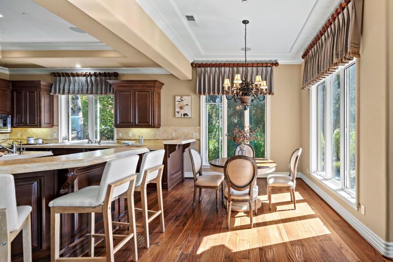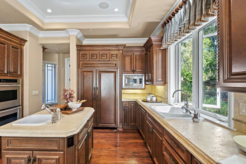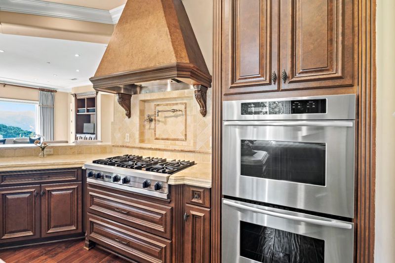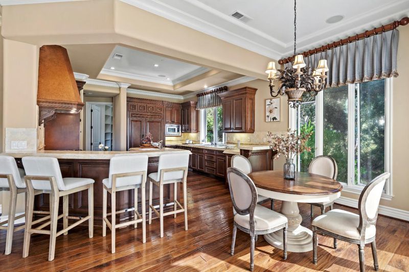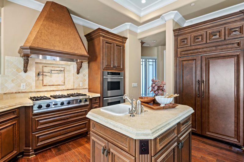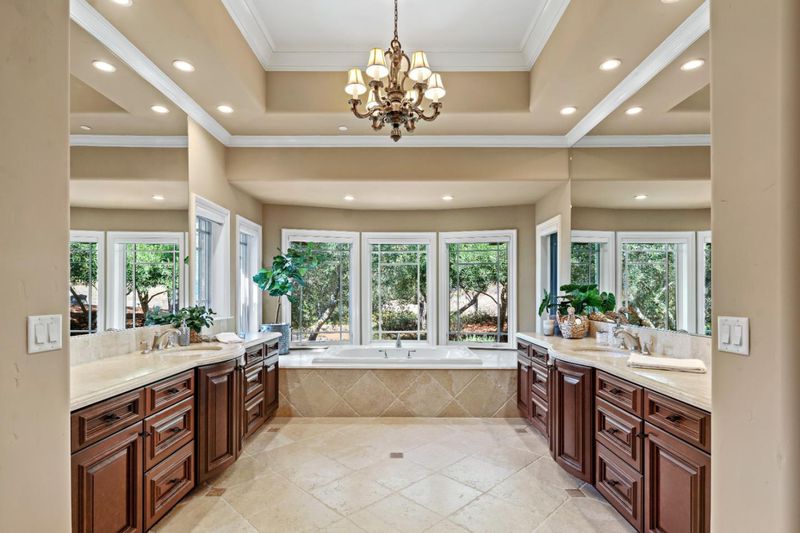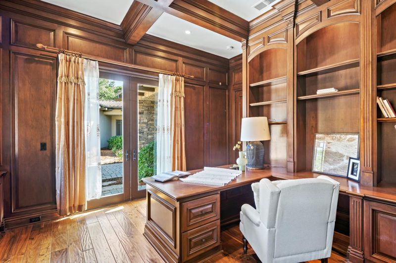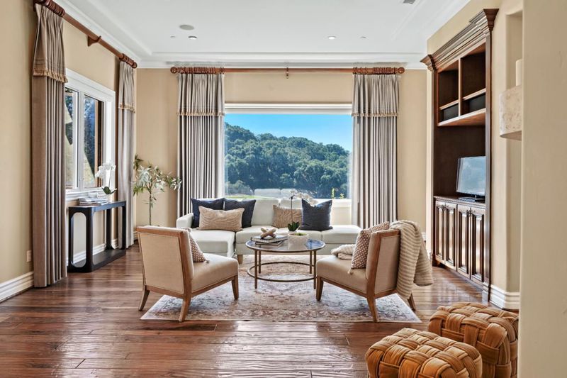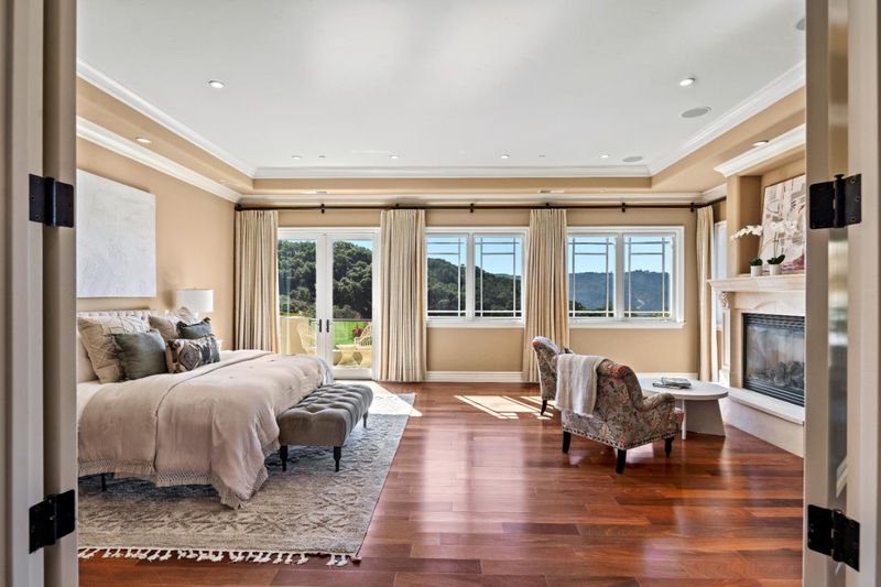 Soak in panoramic golf course and mountain views, from this grand Mediterranean home on the 5th Fairway of the Club at Pasadera. Situated on a private lot of just under an acre, the property features meandering pathways and expansive outdoor BBQ and entertainment areas, all centered around a beautiful pond and waterfall system. Inside, you'll find soaring ceilings and a massive fireplace, with French doors leading out to vista views. An entertainer's dream layout, the chef's kitchen offers an additional caterer's cooktop and prep area in the adjacent pantry. Entering the primary suite, you'll find an additional fireplace, 2 balconies, a walk-in closet and a spacious primary bath, with separate tub and shower. Immediately across the hall, the office/den area is adorned in custom wood work, and offers an ensuite full bath. Downstairs, your guests can enjoy a wood paneled bar and lounge area, complete with a glass wine room and fireplace. 3 very spacious, ensuite bedrooms can be found off the lounge area, as well as large separate laundry room, and separate equipment room. An attached 3 car garage makes this property one that simply offers everything.