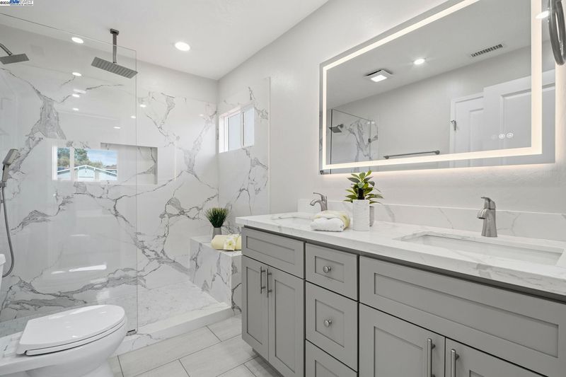 Welcome to this beautifully renovated NORTH-FACING 3-bedroom, 3-full bath home ( All bedrooms with attached full bath ) on a desirable corner lot, filled with natural light and modern elegance. Step inside to an open floor plan featuring fresh interior and exterior paint, new dual-pane windows, new dual color recessed lighting, brand new heating furnace and the stylish kitchen offers SS appliances, upgraded cabinets, Newly installed Storage cabinets adjoining the dining, high end countertops—perfect for cooking and entertaining. The spacious primary suite provides a luxurious retreat, while an additional bedroom with its own bath adds flexibility for guests or extended family. All bathrooms are fully remodeled with new vanities, designer tile, and electric mirrors. A new fireplace and updated closet doors add to the home’s charm. With ADU Potential, this move-in-ready home perfectly blends comfort, versatility, and contemporary design. “This fully remodeled home is move-in ready — just grab your stuff and set