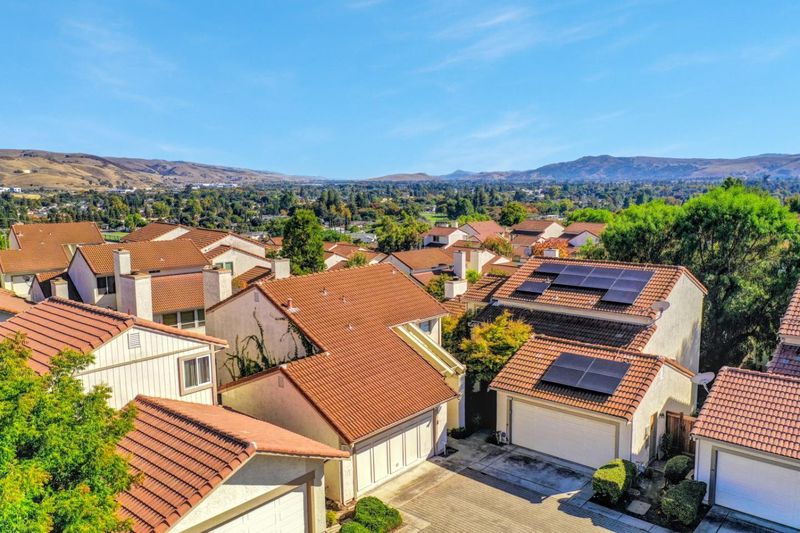 Privately tucked away from the street at the top of the hill, this stunning two-story single-family home offers panoramic, unobstructed mountain views, along with 3 bedrooms and 3 full bathrooms. Interior features a living room with a vaulted ceiling, fireplace and lots of bright, natural light. The dining area opens to a spacious exterior deck for the indoor-outdoor living, perfect for afternoon BBQ's. Two large en-suite bedrooms upstairs, each can fit a king-size bed, plus a bedroom and full bath on the main level. Updates include new water softener system, European style modern kitchen cabinets, quartz countertop, kitchen island, newer range and hood, newer stainless steel dishwasher, LED recessed lights/fixtures, trendy and welcoming wall paint, laminate hardwood floor, central heat, and more! All bathrooms are updated with tile flooring and walls. Attached 2 car garage comes finished with epoxy flooring. Located near several parks, Westfield Valley Fair, shopping centers, Silver Creek, Ranch Golf Club, Marina Grocery, Safeway, Starbucks coffee, with easy access to 101 freeway for the commuters, 2 miles from Valley Christian Schools, and so much more. Welcome home to 610 Skyway Drive!