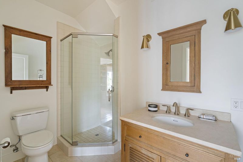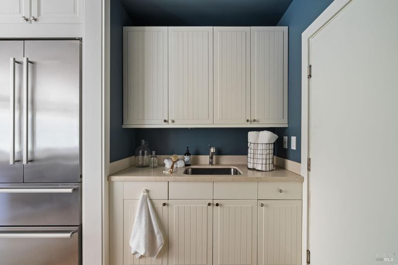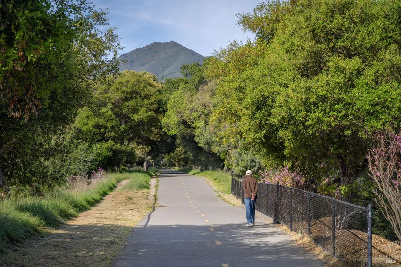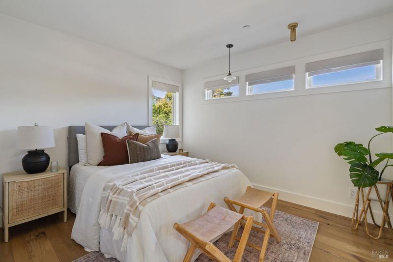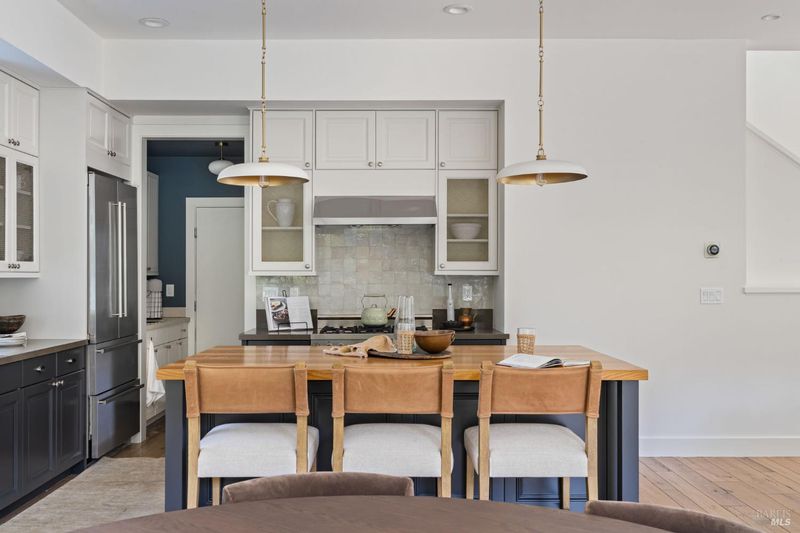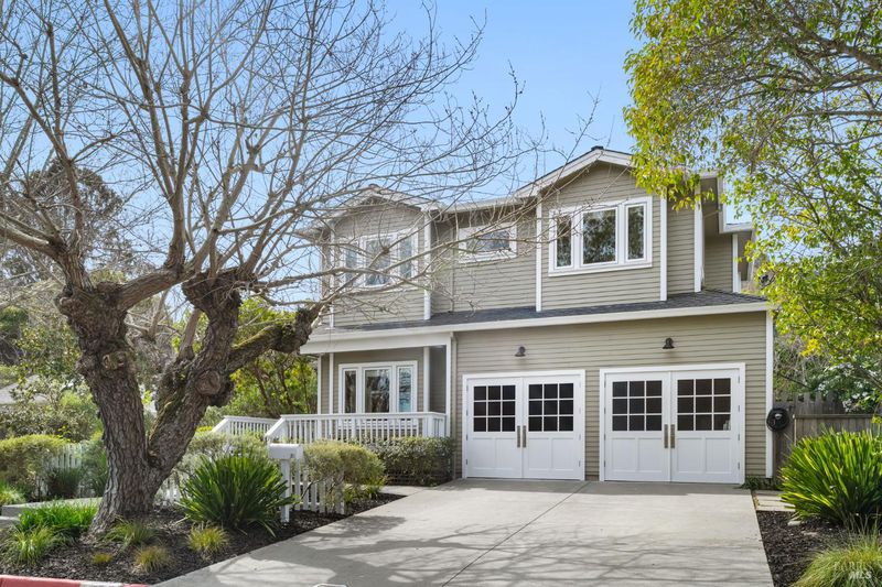 Located on a storybook corner in Corte Madera, 35 Palm captures timeless charm with classic curb appeal. Built in 2009 and thoughtfully remodeled, the home welcomes you with a white picket fence, a front porch framed by white-trimmed windows, and a quiet streetscape that feels both picturesque and inviting. Inside, hardwood floors run throughout generous living spaces bathed in natural light. Just off the entry, a cozy media room features floor-to-ceiling built-in bookshelves, while the main living room impresses with high ceilings, a rustic wood fireplace, and glass doors that open directly to the backyard. The kitchen serves as the heart of the home a large butcher block island with bar seating anchors the space, complemented by professional-grade appliances including a F.W. Bertazzoni gas range, Liebherr refrigerator, and dishwasher. An adjacent dining area creates easy flow for everyday meals or gatherings. Upstairs, the primary suite offers vaulted ceilings, treetop views, and outlooks toward the Corte Madera-Larkspur path. The en-suite bath includes a double-sink vanity, soaking tub, walk-in shower, and an organized walk-in closet. Three additional bedrooms, each with natural light and generous closet space, share a full bathroom with tub-over-shower. The sunny backyard is freshly landscaped with a paved patio ideal for outdoor dining, a flat lawn, and raised garden beds filled with herbs and vegetables. A meandering gravel lane leads directly to the Corte Madera-Larkspur path, where neighbors pass on walks, runs, and bike rides. The attached two-car garage is currently outfitted as a fully equipped workshop with floor-to-ceiling custom cabinetry, a rolling hook ladder, and a large central work table a highly versatile creative space. Living at 35 Palm offers the balance of neighborhood charm and everyday convenience that defines Corte Madera. Parks, schools, and local restaurants are just a short distance away, and the broader Marin community is always within easy reach. From morning rides along the path to evenings dining in nearby Larkspur, the lifestyle here is grounded in nature, community, and the easy rhythm of Marin living.