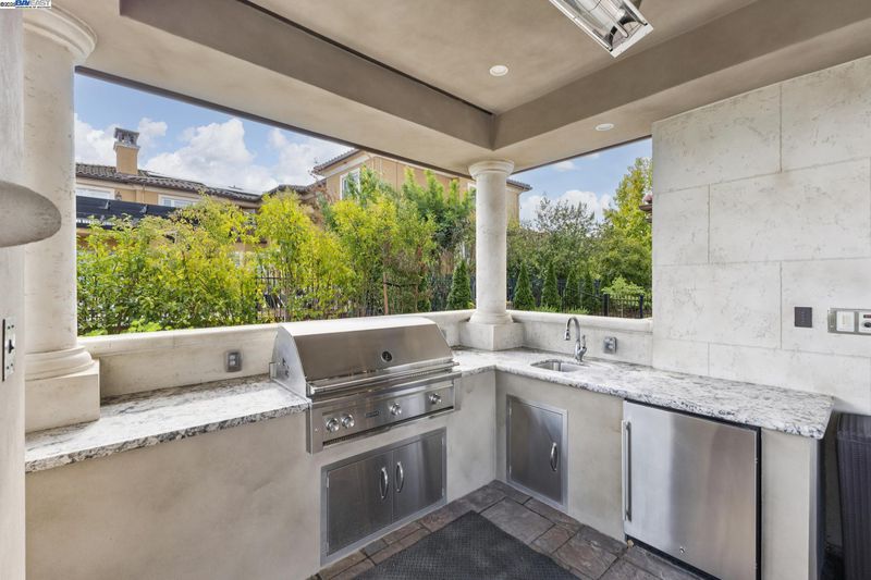 THIS IS IT! Stunning Modern Mediterranean estate with 5 bedrooms, 5 baths, 2 half baths on a private ½ acre view lot. Dramatic exterior finishes with columns, balustrades, and limestone accents, Elegant living and dining rooms featuring arched ceilings, rope lighting, gas fireplaces, and built-in speakers. The kitchen is a chef’s dream, with a large center island with bar seating, top of the line appliances, and a walk-in catering pantry. The spacious family room enjoys fabulous views of the yard, with coffered ceiling and gas fireplace. Also on the main level is a guest suite, utility office, and stately library/parlor. Upstairs the stunning primary suite features a spa like bath, dual walk-in closets, a retreat, and an expansive viewing balcony with incredible views. There are 3 additional bedroom suites upstairs, along with a fully equipped home theatre room, lounge and laundry room. Other amenities include a 5 car garage, interior elevator, hardwood and travertine floors, designer light fixtures, wine closet, limestone accents, extensive mill work & moldings, and more. The resort-like rear yard is an outdoor oasis with pool, spa, and gas fire pit, and decorative fountain, as well as a covered loggia with outdoor kitchen, sitting area, and fireplace. Welcome Home!