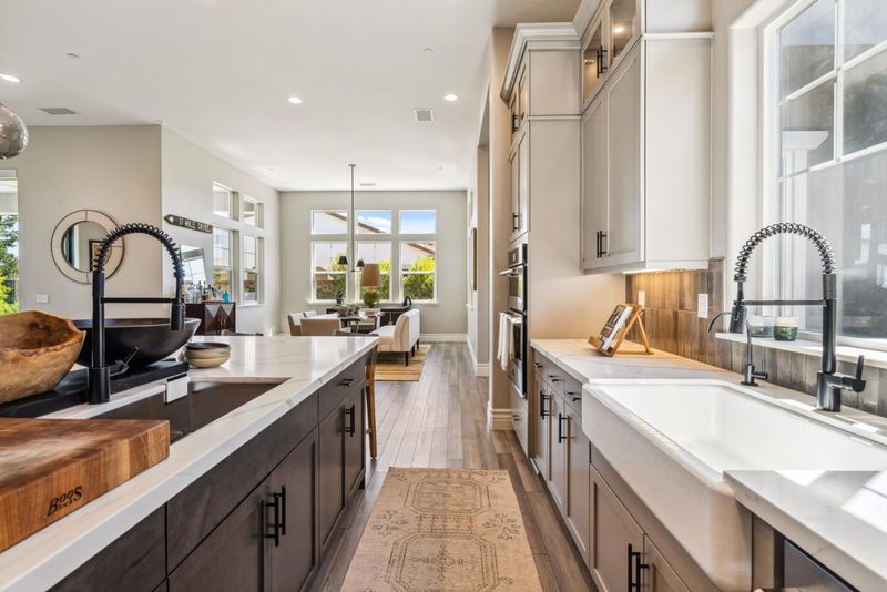 - Cooktop - Gas, Countertop - Quartz, Dishwasher, Garbage Disposal, Hood Over Range, Ice Maker, Island with Sink, Microwave, Oven Range - Built-In, Pantry, Refrigerator, Wine Refrigerator