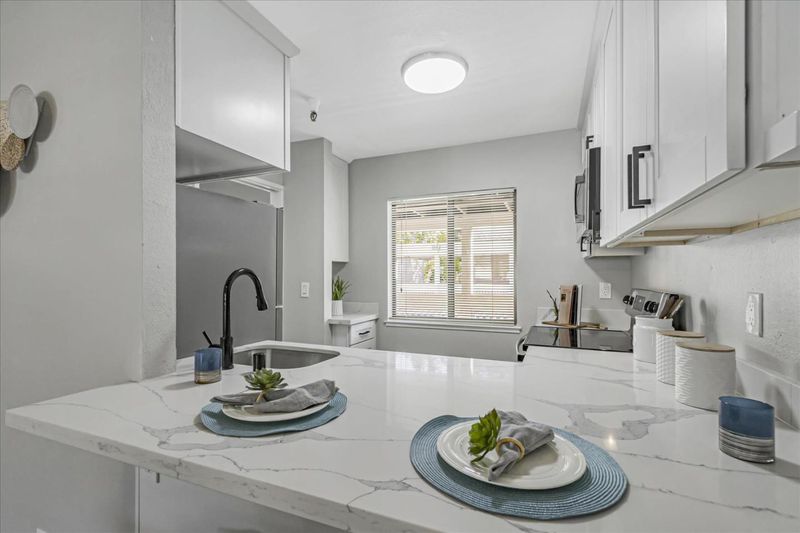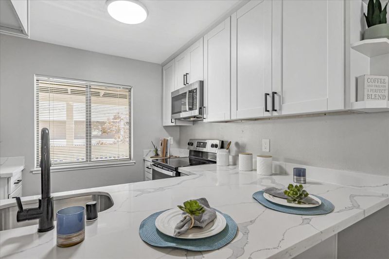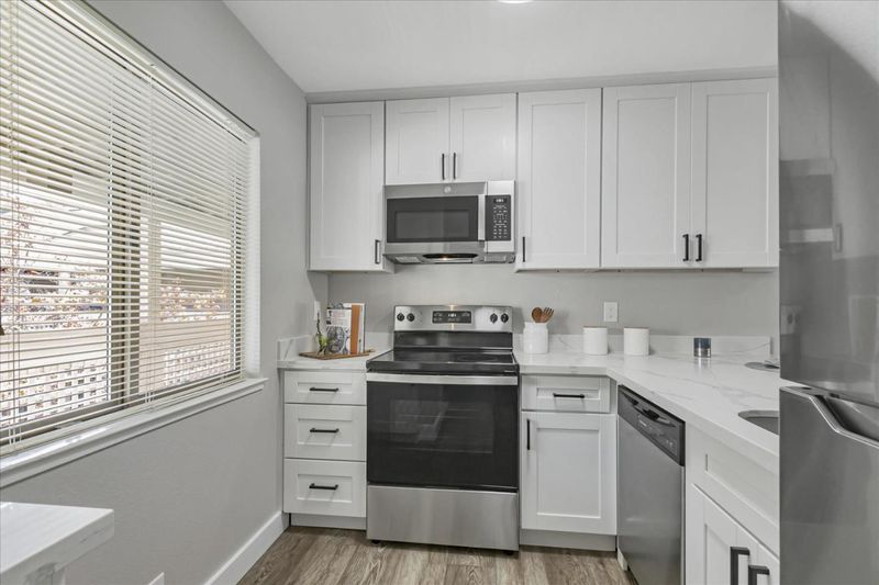 - Countertop - Quartz, Dishwasher, Garbage Disposal, Microwave, Oven Range - Electric, Refrigerator