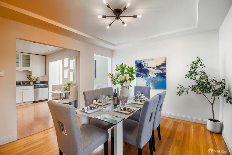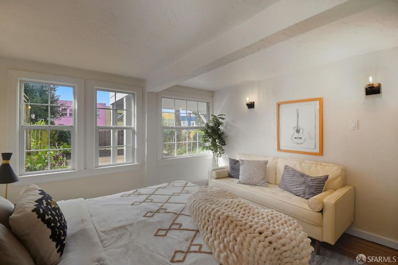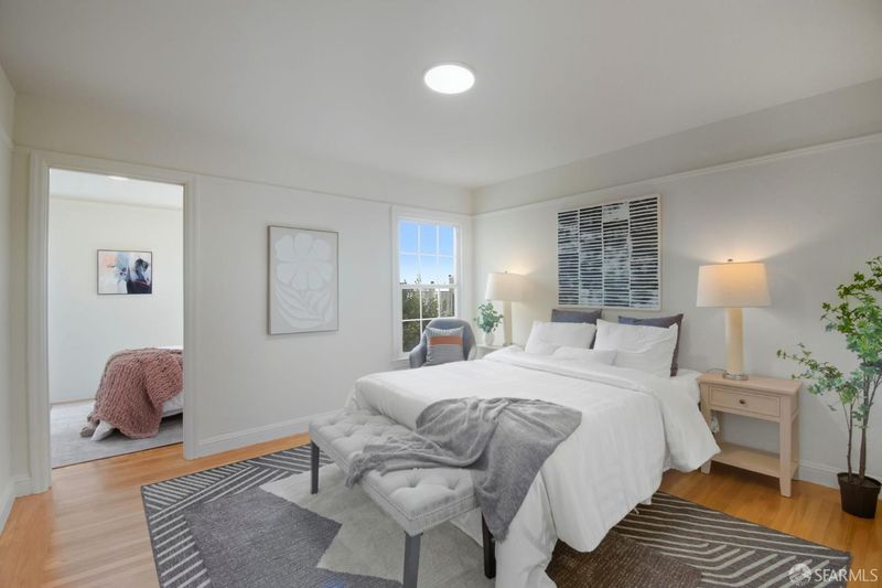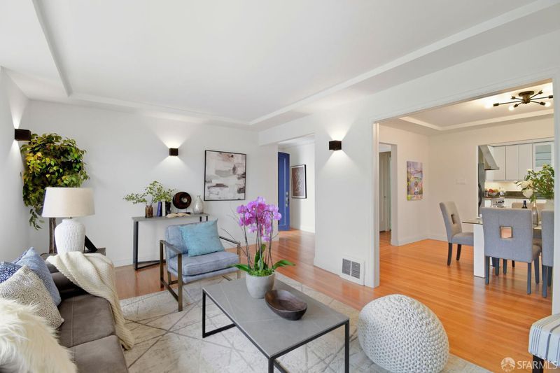 Charming Central Sunset Spanish Mediterranean home ideally situated just blocks from Noriega and Irving Street shops and restaurants, Golden Gate Park, Sunset Recreation Center, Judah Street MUNI lines, public transit, Sunset Reservoir, and nearby playgrounds. This inviting home features a bright east-facing living room with a classic fireplace, formal dining room, and a spacious kitchen with a breakfast area plus an extra pantry area offering abundant cabinets and prep space. The split full bath includes both a tub and separate shower. Two generous side-by-side bedrooms and a versatile sunroom or third bedroom complete the upper level. An interior staircase leads to a spacious garage with tandem parking for two or more cars, a fourth bedroom (permit status unknown), laundry area, and ample space for future expansion or storage. There is a separate side entrance for this level for additional convenience. The large, level, beautifully manicured backyard is perfect for BBQs, entertaining, or relaxing outdoors - an ideal combination of classic charm, space, and convenience in one of the Sunset's most desirable locations.