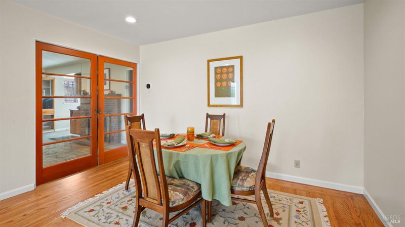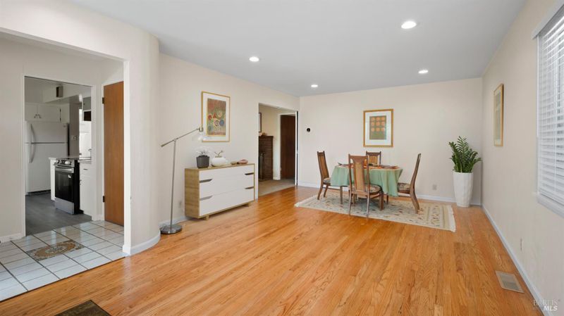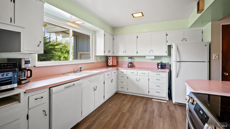 Charming single-story 3BD/2BA home on over 1/4 acre! The updated kitchen shines with a convection oven, new stove, oven, hood, dishwasher & plenty of cabinets. Refinished wood floors add warmth to the living room & primary bedroom, while the family room fireplace is perfect for cozy evenings. Pocket doors for creating separation of space. Spacious primary bedroom has two large closets. Freshly updated baths feature new flooring, cabinets, fixtures & more. Enjoy peace of mind with a newer roof & dual-pane windows. The huge backyard with pergola offers endless possibilities for entertaining or gardening. Spacious driveway, 2-car garage, and a fantastic location, just minutes to the Vallejo Ferry and I-80 for an easy SF commute!