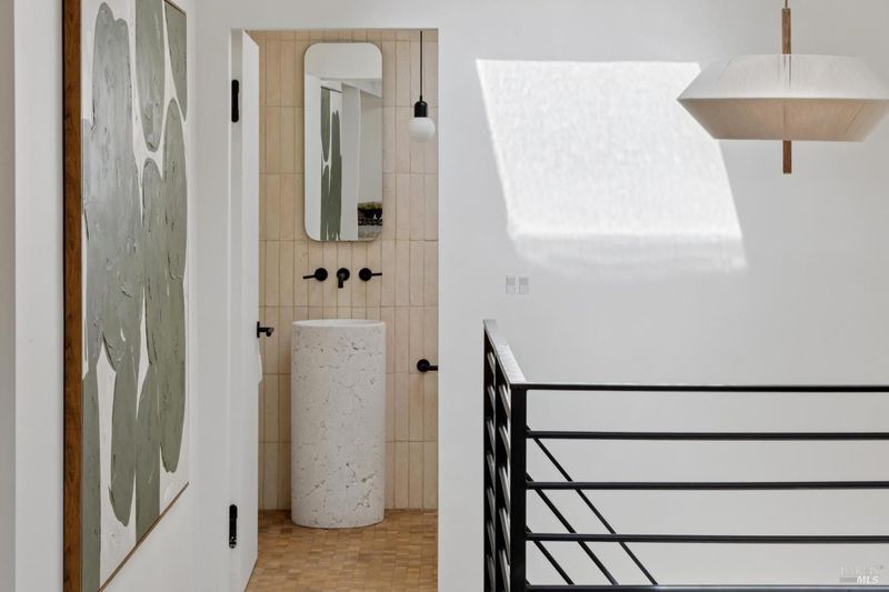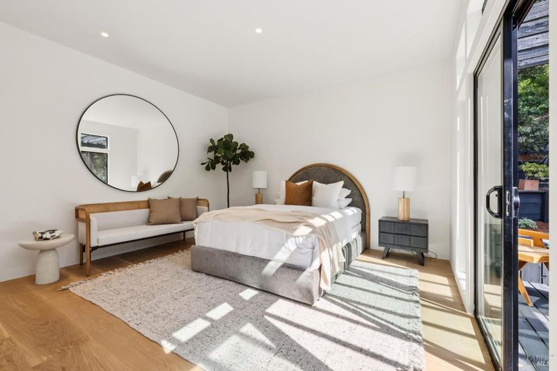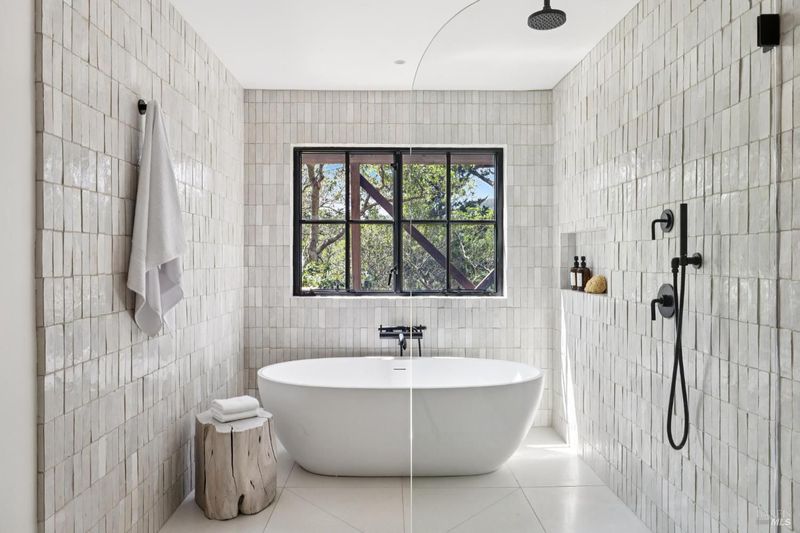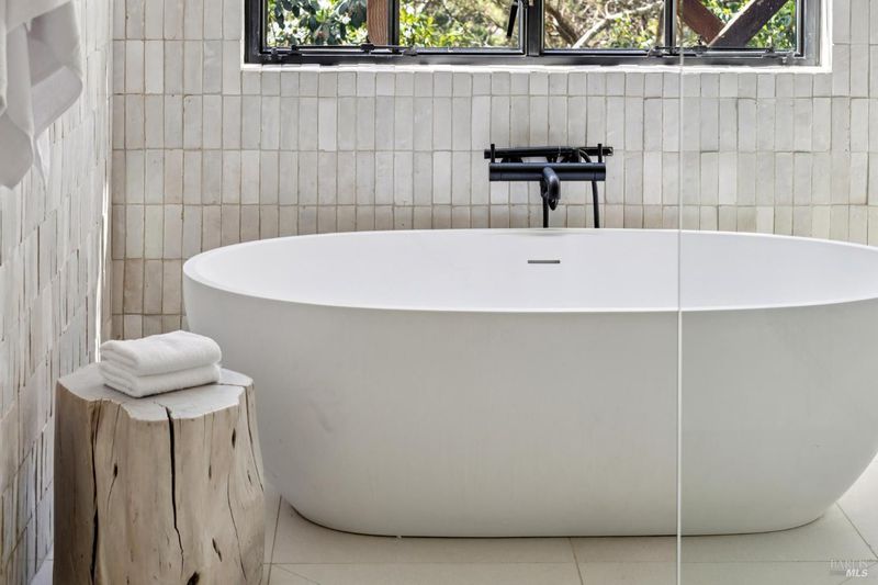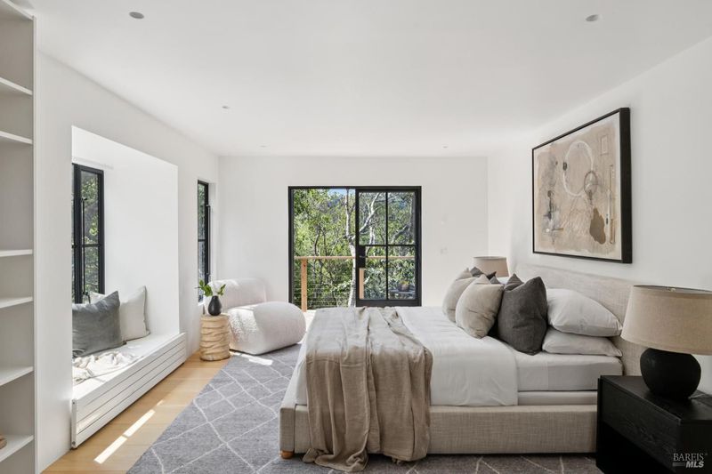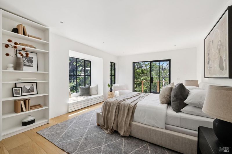 Perched among the trees on a half-acre lot in coveted Mill Valley, 321 Pine Hill offers a rare blend of modern design and natural charm. With its magical, sunny, treehouse-like setting, this beautifully remodeled home feels like a private retreat surrounded by lush greenery and filtered sunlight, yet just moments from town. Thoughtfully redesigned, the home features a large open great room, three gracious bedrooms, a fourth flex room, and a separate studio space. Floor-to-ceiling steel-framed windows and wide-plank white oak floors carry warmth and light throughout, while the custom window boxes cantilevered over the hillside in two bedrooms create suspended reading nooks in the trees. Two sunrooms anchor the design, where angled glass ceilings meet reclaimed wood beams overhead, luminous spaces that blur the boundary between indoors and out. The three spa-inspired bathrooms serve as standout features, each with a distinct material palette: handmade zellige tile and a freestanding soaking tub beneath a steel-framed window, a Moroccan terracotta-tiled powder room with a sculptural pedestal sink, and last a bath finished in terrazzo and patterned ceramic with matte black fixtures. Throughout, the design is warm and minimalist with natural materials and artisanal finishes. Multiple decks extend the living space outside at canopy height, where morning light filters through the oaks and the only sounds are birds and breeze. Arguably one of the best locations in Mill Valley, minutes from neighborhood favorites Hook Fish, Equator, Good Earth, and Junction, among the best Marin trails, and the first exit in Mill Valley for easy SF commuting. 321 Pine Hill offers a truly special living experience where design, nature, and modern living come together in peaceful harmony.