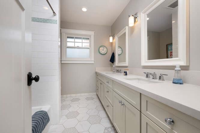 Double Sinks, Primary - Oversized Tub, Primary - Stall Shower(s), Shower over Tub - 1, Updated Bath