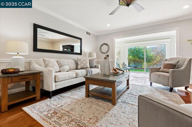 Do not miss this exquisite, beautifully updated, turnkey residence at 1857 Golden Rain Road in the exclusive Rossmoor community. The gourmet kitchen delights with generous cabinetry featuring convenient pull-out drawers, premium stainless steel appliances, and sophisticated granite countertops. Both generously sized bathrooms offer refined granite vanities and refreshing walk-in showers. Tucked in a peaceful enclave with expansive green lawns alive with wildlife (deer, turkeys, birds), a secluded backyard, and stunning panoramic hill vistas. Pristine mature landscaping is expertly maintained by the HOA. Savor outdoor living on the charming covered patio, a shaded oasis for warm summer days. Exceptional storage abounds, complemented by an adorable fenced yard ideal for a small pet. Thoughtful upgrades include energy-efficient windows and doors, modern interior doors, crisp neutral paint, recessed lighting, contemporary fixtures, graceful crown molding, and rich hardwood floors. Most importantly, indulge in Rossmoor's premier gated amenities: specatular golf course, resort-style pools, cutting-edge fitness center, tennis courts, and endless activities.