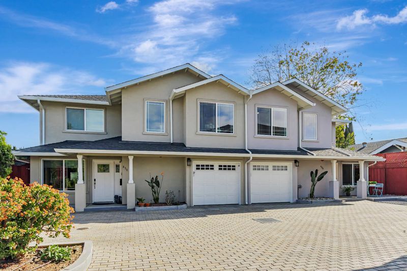 Bright & spacious end unit filled with natural light and stylish upgrades with no shared wall. This beautifully updated 3-bd, 2.5-ba home offers 1,426 sq ft of modern living. The open-concept layout features recessed lighting, engineered hardwood floors, and a gourmet kitchen with quartz countertops, a sleek backsplash, and stainless steel appliances. The luxurious primary suite includes a spa-like bath with a double stall glass-enclosed shower, quartz vanity, and a private balcony. The upstairs guest bathroom offers double sinks, a quartz vanity, and a shower/tub combo. Additional highlights include central heating & cooling, double-pane windows, Hunter Douglas roller shades, Hunter Douglas ceiling fans in bedrooms, and a custom Italian tile entry. Step outside to a beautifully designed, low-maintenance backyard perfect for entertaining or relaxing. Italian stone tiling adds charm and durability to the front, side, and rear yards. The 2-car tandem garage includes custom cabinetry & epoxy flooring and 2 additional parking spaces in front of unit. Located near Valley Fair Mall, Santana Row, downtown Willow Glen, Rose Garden, Shark Tank, Whole Foods, Diridon Station, Parks, restaurants and major freeways, this home offers the perfect blend of comfort, convenience, and style.